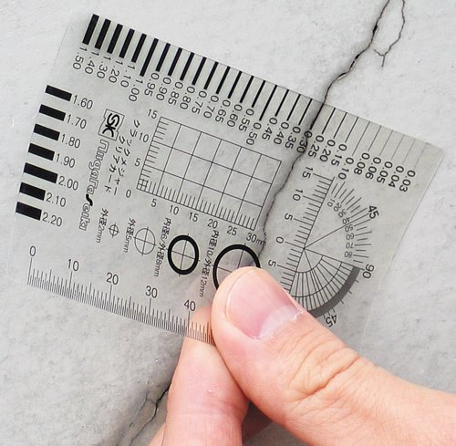●コンクリートのクラック(ひび割れ・亀裂)幅を測定するのに便利なクリアタイプです●壁面や基礎などのひび割れ測定 ●一般的な幅、長さ測定●目盛幅精度(mm):±0.02●縦(mm):91●横(mm):55●厚み(mm):0.175●長さ(mm):0~80●幅(mm):0.03~2.20●角度(°):0~180●方眼目盛(mm):15×30●ポリエステル●※こちらの商品はご入金後のキャンセルは承れませんので予めご了承ください●こちらの商品はメーカー・取引先からの直送品となります。【代金引換払い】【お届け時間指定】【店頭引き渡し】はご利用になれませんので、あらかじめご了承ください。