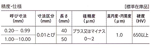 - 径精度(μm) : プラス又はマイナス0~2