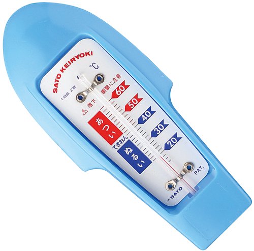●浮かべてかわいい温度計。●湯温の調節に。●計測範囲:60℃●材質:浮型スチロール樹脂●本体サイズ(mm):全長162×全幅68×厚さ23