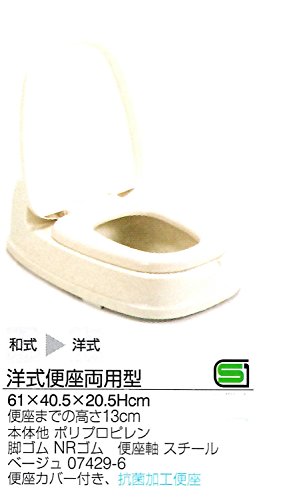 ●和式トイレにはめるだけ!リフォームいらずで洋式便座に!●和式トイレを洋式に!簡易洋式便座。●大掛かりな工事なしで、和式トイレを洋式に変えられる。●抗菌加工。●装着許容寸法:便器の内径幅17.5cm・奥行40cm以上、便器手前30cm以上(立ち上がりのための足ひきスペースが必要です。)●サイズ(約):61×40.5×高さ20.5cm (座面までの高さ:13cm)●材質:本体他:ポリプロピレン すべり止め/RNゴム 便座軸/スチール●こちらの商品はメーカー・取引先からの直送品となります。【代金引換払い】【お届け時間指定】はご利用になれませんので、あらかじめご了承ください。●沖縄・離島への配送はできませんのでご了承ください。