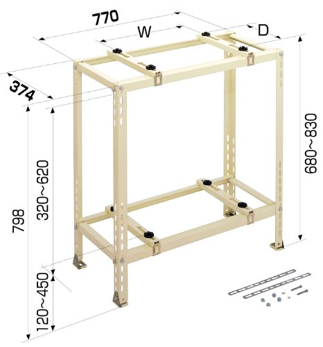 - 機器アシ固定寸法/奥行(D) :140-320mm