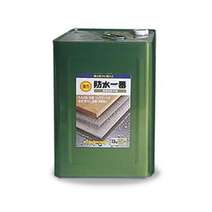 [###商品名] ●特徴 ・ 強力防水一番は、さっと塗るだけで、素材内部に 浸透。 長期間の防水・ 防かびに威力を発揮します。 ●用途/モルタル壁、コンクリート壁、板壁、ブロック、木製スノコなど 室内の素材の防水に ●塗布面積 スプレー420ML(2~4m2) 900ML(7~10m2) 3kg(30~35m2) 13kg(120~140m2) ・ 水性つやあり1回塗り下塗り専用つやけしグレー除く ※さびの上に直接塗る時は2回塗りしてください。 ・ 乾燥時間:夏期5~6時間、冬期8~10時間サイズ:13Kg 原産国日本