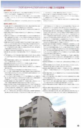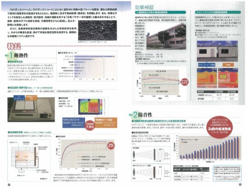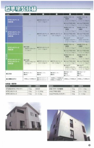 「特長」熱伝導率比較:断熱性能は熱の伝わりやすさを数値化した「熱伝導率」で表すことができます。熱伝導率が低いほど熱を伝えにくく、断熱性が高いことを表します。「NTダンネツベース」「NTダンネツコート」は塗料中に中空特殊バルーンを配合することにより、従来型の塗料と比較して1/5の低熱伝導率を実現しました。・防音性:自動車用防音材開発の経験を生かした防音技術を採用、NTダンネツコート塗装の基材と未塗装の基材を比べると、外部からの騒音に対し高い遮音性能を発揮します。このため、屋内への音の浸入を抑え、静かな環境を実現します。・環境対応:下塗から上塗まで水系タイプのため臭気も少なく、居住者や施工者に安心してご使用いただけます。また、塗料の低密度化により、荷姿の超軽量化(密度:NTダンネツベース 0.82g/? NTダンネツコート 0.76g/?)を実現。建物への負荷を軽減し、塗装作業性にも優れています。・透湿性、防水性:優れた透湿性により、建物内部の湿気を外に逃がします。また外部からの水の浸入には高い防水性を発揮します。・塗膜性能:NTダンネツコートは塗料としての本来の塗膜性能にも優れています。高耐久性を有するアクリルシリコン樹脂を採用し、長期に渡り躯体を保護するとともに、弾性塗膜が下地のクラックに追従し、躯体を保護します。またNTダンネツベースは既存塗膜に対して強い密着力を発揮する「エポキシ基」と、上塗材に高い密着性をもつ「官能基」を架橋材で結びつけることにより、既存塗膜と上塗材双方に対して優れた密着力を発揮します。