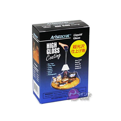 リキッドガラス・エポキシレジン(エポキシ樹脂) 896g 日本特殊塗料の詳細 -超光沢仕上げ剤- 【特長】 ●リキッドガラス・エポキシレジン(エポキシ樹脂)は、室内のインテリアが透明で光沢ある表面仕上がりになります。 ●リキッドガラス・エポキシレジン(エポキシ樹脂)は、どんな表面、粗面、フラットな面にも塗装できます。内装品の木材、ガラス、塗装面、鉄陶器など(外部には不適)に塗装出来、透明な艶のある仕上がりになります。又、無溶剤エポキシ塗料2液反応タイプなので、厚膜施工が出来るのが特徴です。 【用途】 ●主に室内内装品の木材、ガラス、鉄、陶器、スチロールなどの塗装面にご利用いただけます。 【塗り面積】 ●0.224kg/膜厚1.5m/0.15平方メートル 【乾燥時間】 ●24時間以上(完全硬化5日)