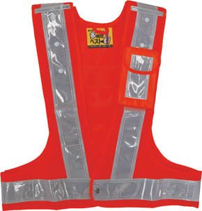 - ●縦510~590×横520~650mmの調節が可能・マジックテープとホック(肩部)による調節・反射帯60mm幅 ●万能ポケット付き(左胸前部・腰内部、各7箇所)