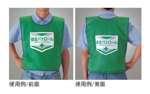 緑十字 メッシュ製安全ベスト(ゼッケン) 安全パトロール 600×440mm 320003