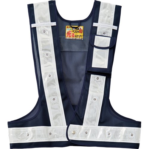 緑十字 多機能LED安全ベスト 紺/白発光/白反射 フリーサイズ メッシュ生地 238098