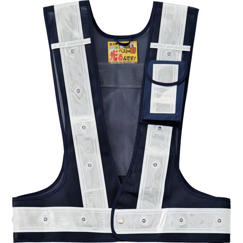 緑十字 多機能LED安全ベスト 紺/赤発光/白反射 フリーサイズ メッシュ生地 238096