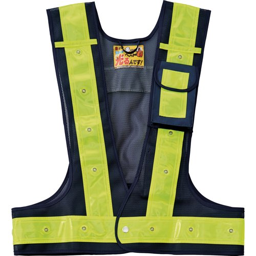 緑十字 多機能LED安全ベスト 紺/赤発光/黄反射 フリーサイズ メッシュ生地 238099