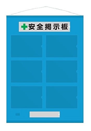 - 上下パイプ・ヒモ付、裏面収納用ポケット×1箇所、A4サイズ用ポケット(横)×6箇所、裏面収納用ポケット×1箇所、上下パイプ・ヒモ付、取付方法:吊り下げ、本体:ナイロンターポリン、ポケット:PVC、タイトル表示板(表示内容:安全掲示板)、社名用厚紙(白無地)