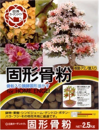 「固形骨粉 2.5kg」は、骨粉でリンカリ分を強化した、花と実のための大粒醗酵油かすです。