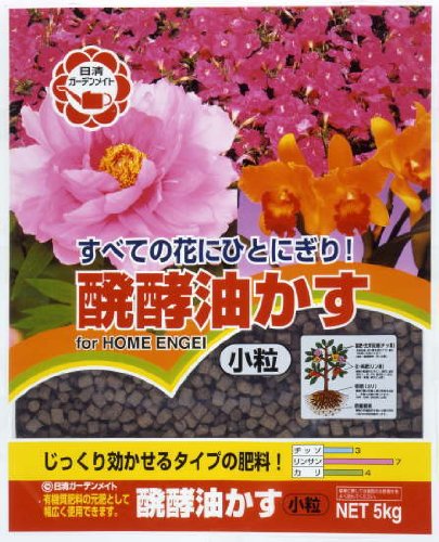 「醗酵油かす小粒5kg」は、花木・花苗・樹木全般に使える万能有機肥料です。元肥や追肥としてお使いいただけます。微量要素も豊富に含み、丈夫できれいな草花を育てます。