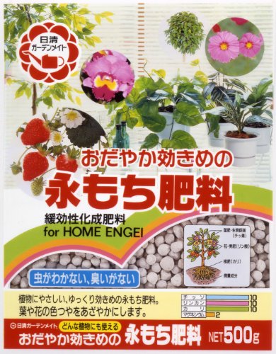 ●【商品説明】●「永もち肥料 500g」は、効き目が緩やかにながく続く肥料です。●草花全般に元肥としても追肥としてもお使いいただけます。●マグネシウムを多く配合しており、葉や花の色つやを鮮やかにします。●内容量:500g●サイズ:200*140*25mm●重量(kg):0●まとめ買いの場合、システムの仕様で個数分の送料が加算される場合がありますが、送料は1配送先につき1個分の金額となります。●システムの仕様で配達日を指定出来る場合がありますが、配達日の指定は出来ませんのでご了承ください。尚、時間指定は出来ます。●ご注文確定後のキャンセルならびに、お届けしました商品のお客様都合による「返品 交換」は行っておりません。