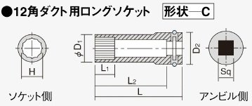 日立工機 12角ダクト用ロングソケット 0099-6153 HITACHI