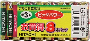 日立 アルカリ乾電池単3・8個 LR6EXS8P