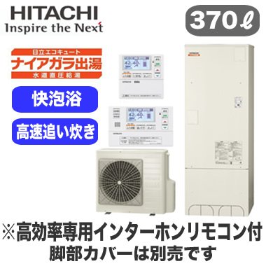 【高効率専用HEMSインターホンリモコン付】 日立 エコキュート 370L ナイアガラ出湯[水道直圧給湯] 標準タンク(高効率) フルオートタイプ BHP-FV37RD + BER-R1VH