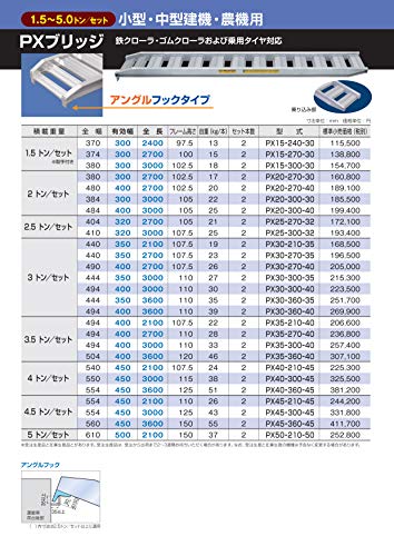 【日軽金アクト】PXブリッジ(アングルフックタイプ) 全長2100x有効幅350(mm) 最大積載3.0t/セット(2本) [PX30-210-35]