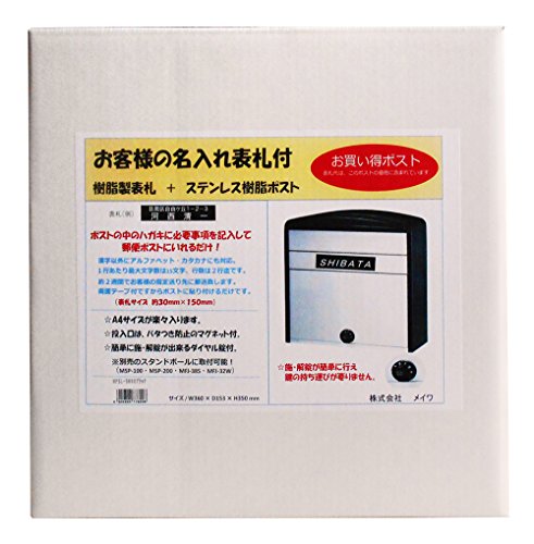 メイワ お客様の名入れ表札付 樹脂製表札+ステンレス樹脂ポスト ブラック HPSL-3600