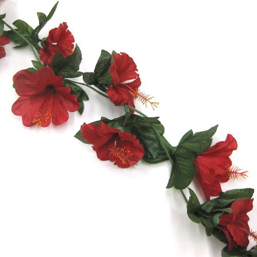 - 夏の店舗飾りやディスプレーに使える、造花のカラフルなハイビスカスのつる状の飾りです。
