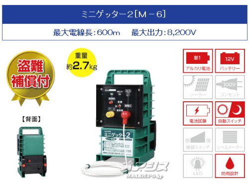 屋外用完全防雨型 電気牧柵器 ミニゲッター2 M-6