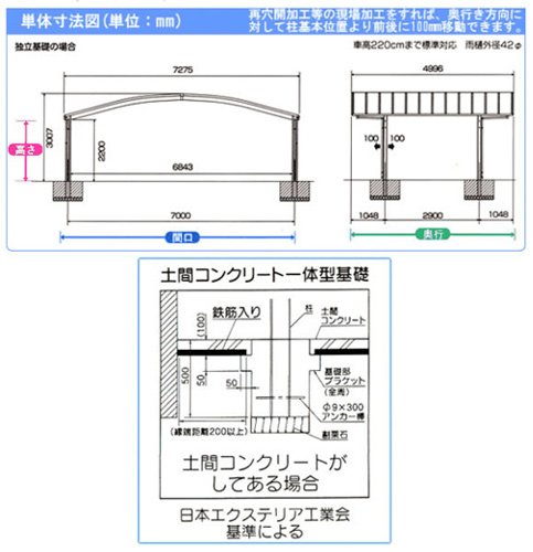 3台用カーポート 間口7275mm奥行4996mm