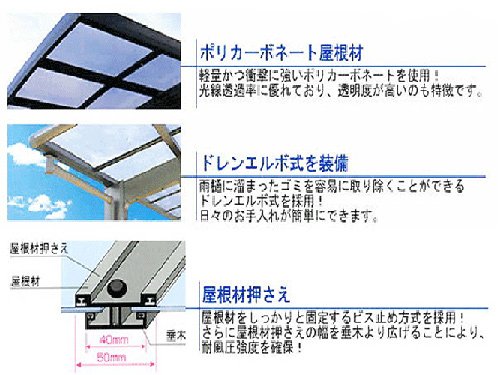 - 優れた強度を持つ鉄芯を入れた、3台用カーポート。