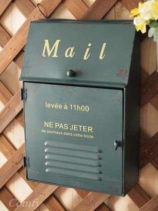アンティーク雑貨 ブリキ ポスト 郵便受け メールボックス ブルー