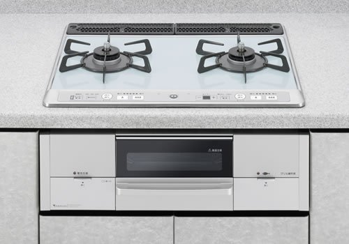 - 天面操作なので、ムリのない姿勢で調理ができます。お手入れが楽なGクリアコート天板を採用。