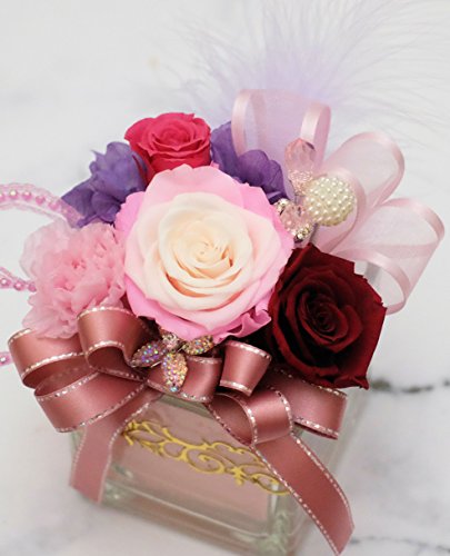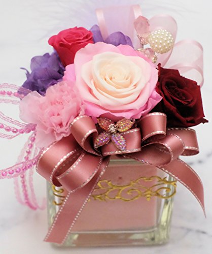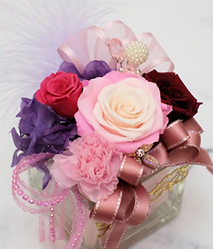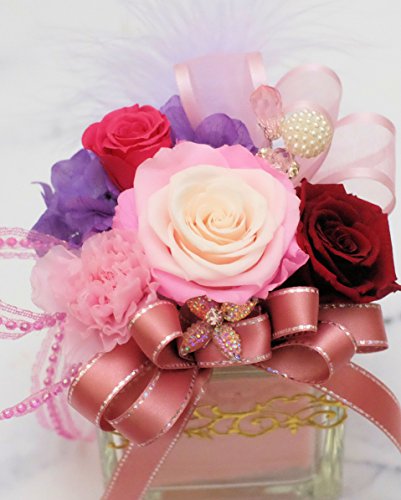 - ※蝶の形をしたバタフライピックは二種類となり、選択はできません。あらかじめご了承ください。アレンジサイズ:(約)横16cm×奥行16cm×高さ18cm クリアケースサイズ:(約) □16×高さ20cm※ミルキーなピンクオパールの薔薇とオシャレなアンティークピンクのカーネーション(アンティーク色はメーカーの仕様です。)、ライトなピンクの紫陽花をを使った大人の女性に大人気のピンクが満載で可愛いと評判!ほか、イエローとブルーを含めて三色ご用意しています