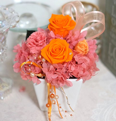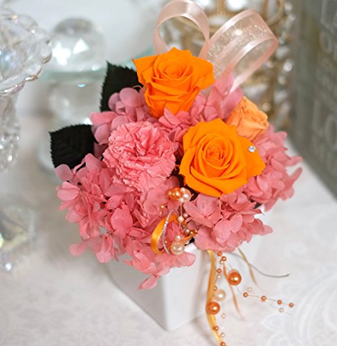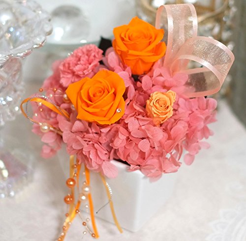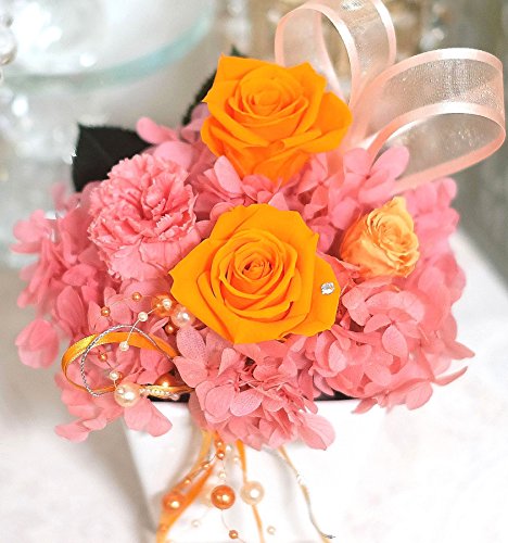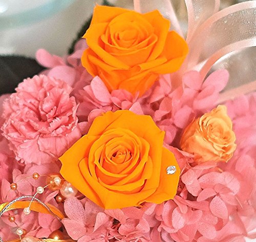 盛りたくさん純粋100%プリザーブドフラワー このサイズでこの価格 スワロフスキー・高級クリアケース付 ブロッサムオレンジ
