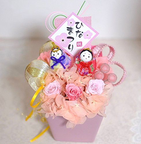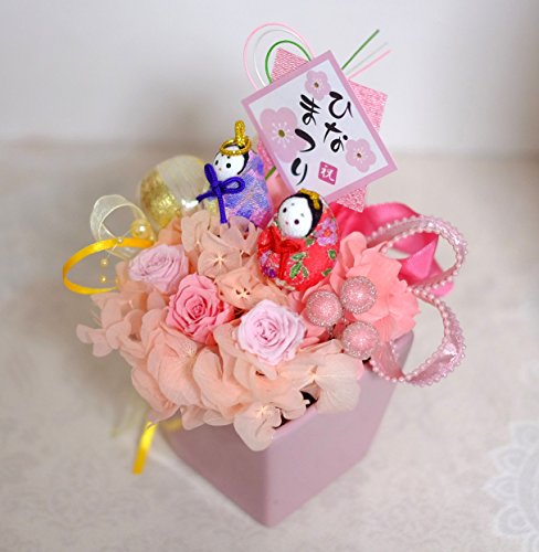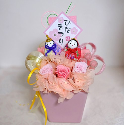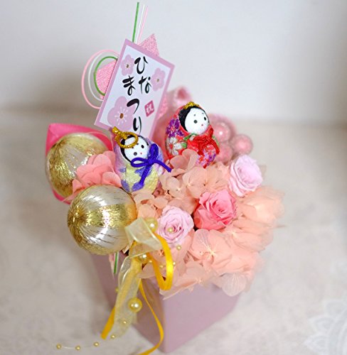 ひな祭り純粋100%プリザーブドフラワー【クリアボックス付き】 このサイズでこの価格 (ピンク)