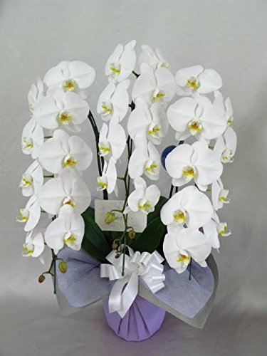 高級花屋の元店舗責任者が、全国より厳選した最高の品質とコストパフォーマンスの良さ。 東京都内の複数の東証一部上場企業や、テレビでも有名な大手企業社長さまからもご注文頂いている顧客満足度が高い胡蝶蘭です。 超一流生産地大臣賞受賞歴がありからの直送 大輪系白コチョウラン3株寄せ植え。 高さ:約80~90cm 幅:約55cm 鉢物にはすべてラッピングを無料で致します。 誕生日お祝い、結婚記念日、開店祝いなどお気軽にどうぞ。 メッセージカードor立て札(厚紙),ラッピングは無料でお付けします。 当日10時までのご注文で、2日後配達可能です。 当該商品はギフト注文が殆どのため納品書は付きません。 ■冬季ご注文について ・北海道、東北など凍結の恐れのある地域への発送はご遠慮いただいております。 ・年により気候の差がありますが、通常は12月中旬~3月中旬です。 ・多少前後する場合がありますので詳細はお問い合わせください。 ■ご注意 ・贈答用はAmazonのシステム上、お客様のご連絡先が、当社に伝わらないようになっております。配送伝票にご記載希望の場合は、別途メールにてご注文日中にご連絡をお願いします。(当日発送希望の場合は、ご注文後、即時にお願いします)なお当社からの返信をもって、確認済とさせて頂きます。ご連絡なき場合は、当社の住所電話番号社名を代理と記載のうえ、お客様のお名前のみをお書きします。 ・お届け先のご在社ご在宅日時をご確認の上、ご注文ください。 生花のため、ご不在による引取送料、荷痛みの負担、送料はお客様のご負担になります。
