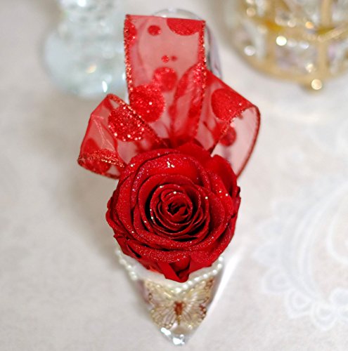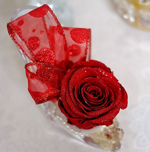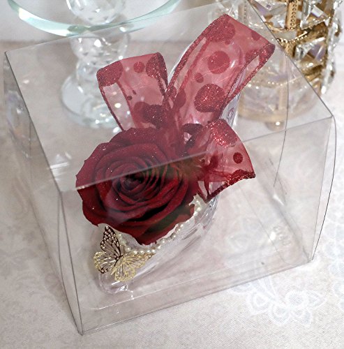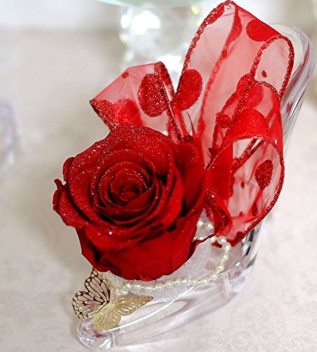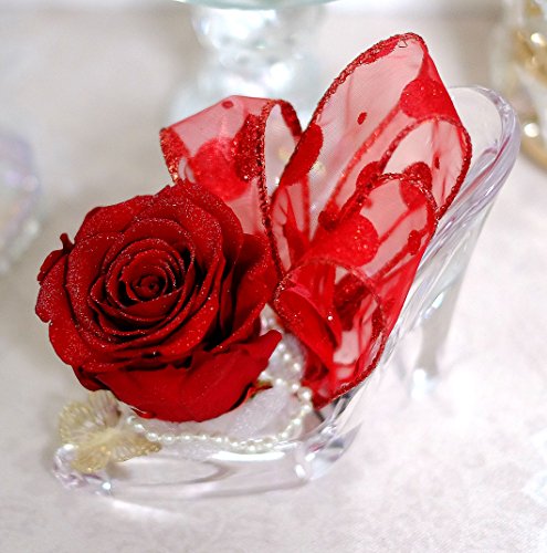 ガラスの靴を忘れたお姫さま風のプリザーブドフラワーアレンジです。 靴はアクリル製です。 バラの直径約7.5cm