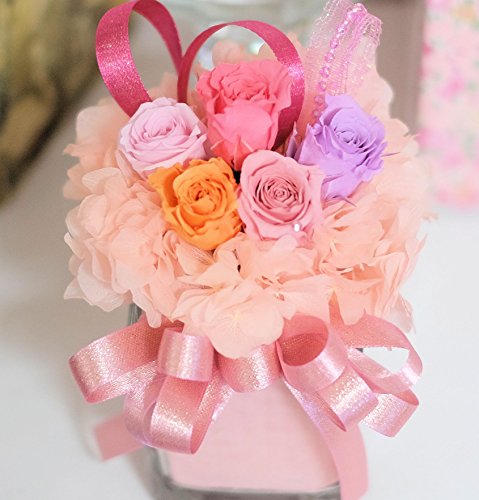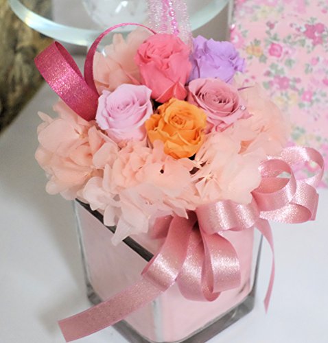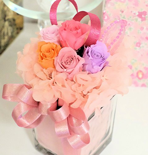 ガラスの器 純粋100%プリザーブドフラワー スワロフスキー付きリボンクリアケース付き 【テレビ映画、六本木ヒルズセレブ、高級ブランドや東証一部上場企業、代議士、芸能人、ミリオンセラー作家などを顧客に持つフラワー装飾の東京ミリオンフラワーデザイナーChihiroのギフトブランド『ミルフルールChihiro』】高級クリアボックス無料サービス期間中!プリザーブドフラワーギフトアレンジ (パステルマルチカラー)