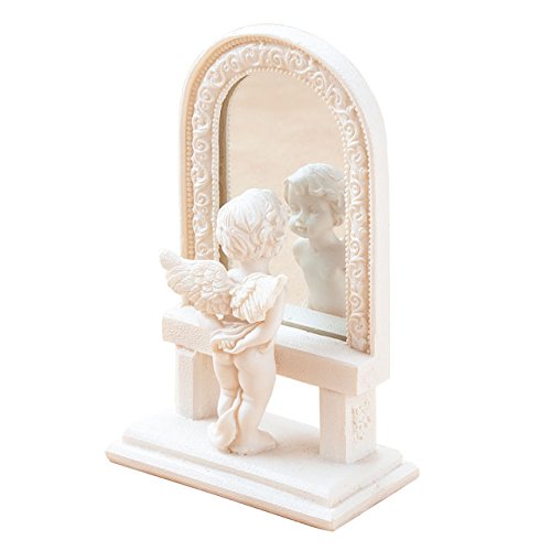 幸せを運んでくれる使者:天使のオブジェ♪ 鏡を覗く愛らしい表情のエンジェルミラースタンド☆ フラワーアレンジして飾ると、より以上可愛いく変身! 素敵な雰囲気で心を落ち着かせてくれます☆