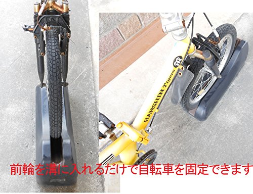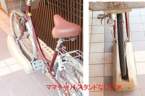 自転車を溝に入れるだけで駐輪できるコンクリート製の自転車止め。スタンドなしでも倒れにくい重量・安定設計です。