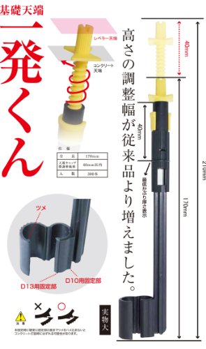 1回の作業で、コンクリート天端とレベル天端を出します。 ■特徴 ・固定部位は縦鉄筋、D-10、D-13に対応します。 ・作業時間が従来の1/2以下 ・ベタ基礎のスラブ(土間)天端出しにも利用できます。 ■仕様 ・入り数:300本