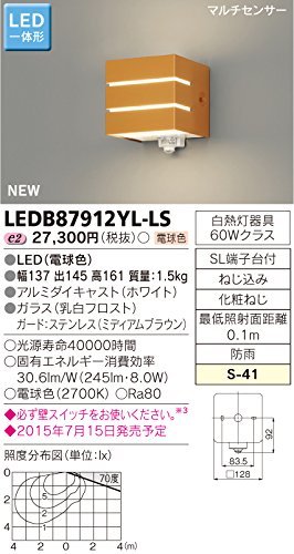 東芝ライテック LED一体形アウトドアブラケット マルチセンサー付ポーチ灯 ミディアムブラウン 幅137