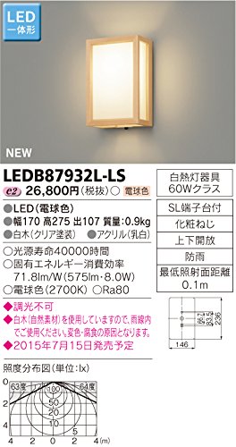 - 特記事項 : 調光不可・機能、特徴 : LED一体形、白熱灯器具 60Wクラス、上下開放、防雨、最低照射面距離0.1m、壁面専用