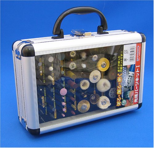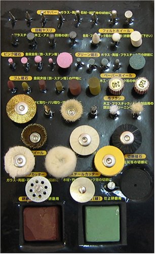 金属の荒削りから、ガラス細工、木工細工、プラモデルのバリ取り、貝殻細工、塗装前の下地処理、貴金属の艶出しなど、多種多様のホビールーター用先端パーツ18種類(60本)、3mm軸が入ったセットです。 初心者の方にもわかりやすいように、用途と一般名称が収納箱に印刷してあり、使用後は丈夫なアルミトランクケースに収納できます。【特長】・さまざまなホビー作業に使える先端工具(先端パーツ)を取り揃えています。 ガラス細工(ガラスリッツェン)、プラモデルのバリ取り・塗装前の下地処理、 貝殻細工、篆刻荒彫り、仏像荒彫り、貴金属・腕時計などの艶出し、フィギア製作、 ルアー製作など、ほとんどのホビー用途に使えます。・荒削りから、サビ取り、キズボカシ、バリ取り、仕上研磨、艶出しまで取り揃えています。【使用方法】(1)3mm軸の先端ツールが装着可能なホビールーター(ミニルーター)に取り付けて、 研削、研磨、磨き作業が可能です。