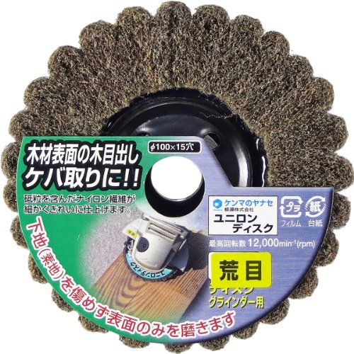 ●金属用ディスク、キズ取り、仕上げ用、ディスクグラインダー(ベビーサンダー)に取り付けて使用するシリーズです。砥粒を含んだ不織布のディスクで、ソフトタッチで削り過ぎがありません。研磨布よりも細かな仕上げになります。金属だけでなく、木材にも使用できます。ペーパーディスクの後の研磨、麻バフ・綿バフディスクの前工程。木材の表面の研磨、木目出し、ケバ取りにも適しています。【注意事項】本来の使用用途以外の目的で使用しないでください。幼児の手の届くところに置かないでください。