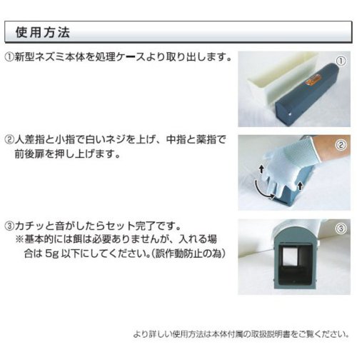 5.ネズミは臭いの付いている通路を通る習性があるので、捕獲器にネズミの臭いが付けば付く程良く取れます。