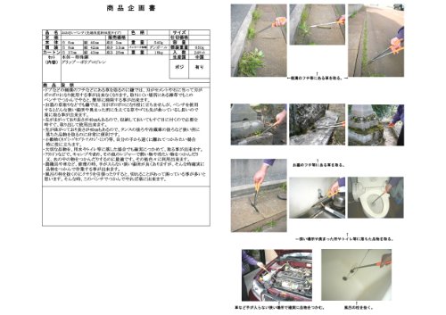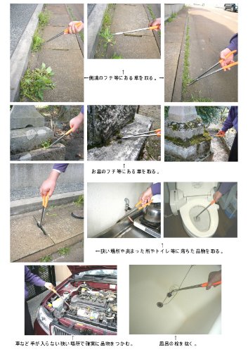 - ●先が曲がっており長さが40㎝もあるので、タンスの後ろや冷蔵庫の後ろなど狭い所に落ちた品物を取るのに非常に便利です。 ●小動物(ネズミ・ゴキブリ・ナメクジ・ミミズ)等、自分の手から遠くに離れてつかみたい場合特に役に立ちます。