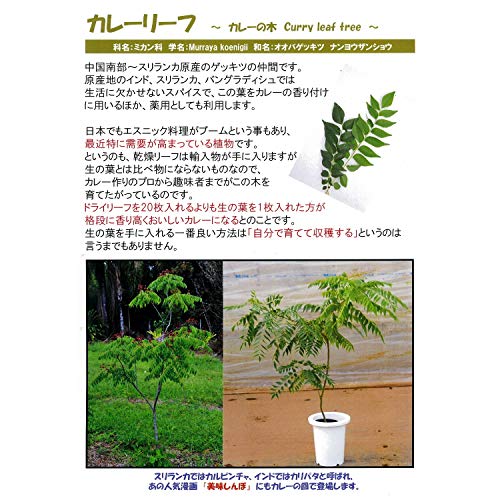 カレーに限らずとも香味付けに使用され、強壮剤としても知られており、葉、樹皮、根は食欲を増進し、消化を助ける作用があると言われています。 原産地では、生垣などにも利用されています。