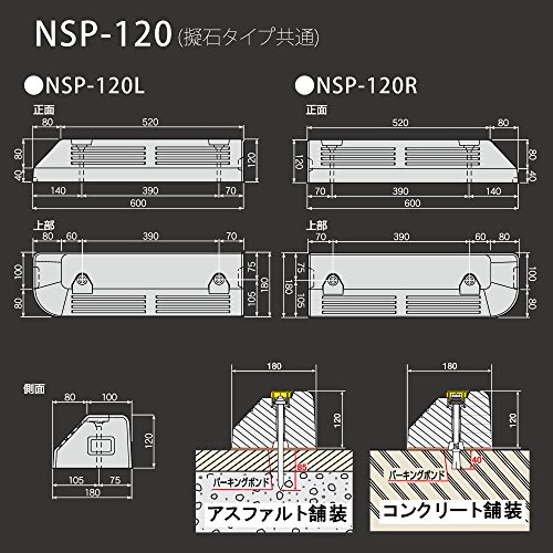 NSP-120R アスファルトアンカー付 パーキングブロック 高120×幅180×長600mm