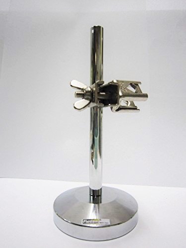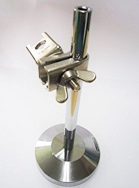 材質:スチール スタンドベース(クロムメッキ)φ80 スタンドベース 支柱取付ネジ穴 M8 連結支柱(クロムメッキ) φ12 L150 雄雌M8 蝶ナットVクランプ(無電解ニッケルメッキ) 上部(バンド)φ12 下部(角枠)φ8~φ12 重量:770g Made in Japan