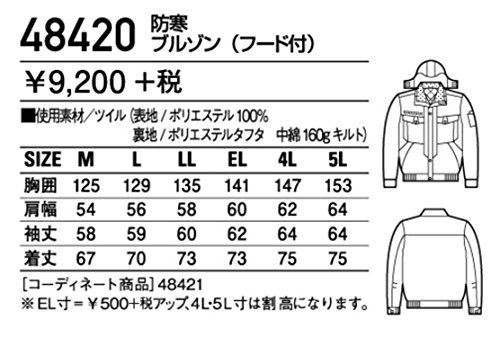 自重堂 JICHODO 防寒ブルゾン(フード付) 48420 シツクブラツク LLサイズ