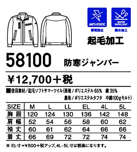 自重堂 JAWIN 防寒ジャンパー 58100 チヤコールグレー LLサイズ