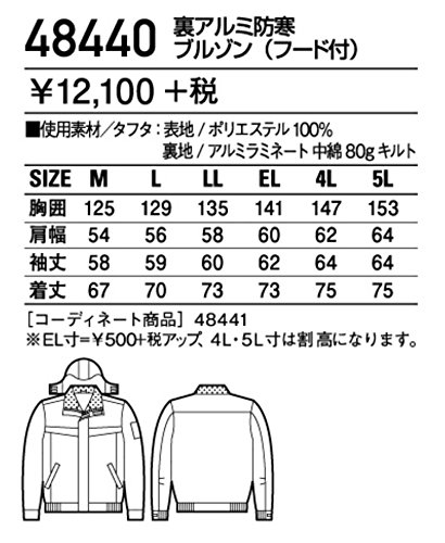 自重堂 JICHODO 裏アルミ防寒ブルゾン(フード付) 48440 ネービー Lサイズ