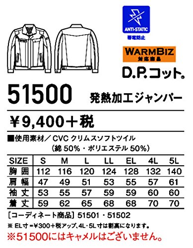 自重堂 JAWIN 発熱加工ジャンパー 51500 ブラツク 5Lサイズ